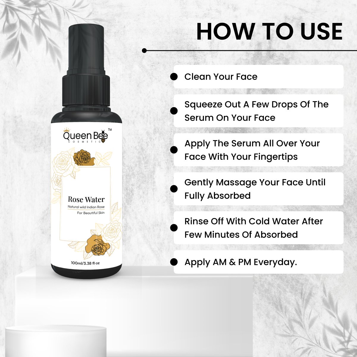• 🌹EASY APPLICATION: The application ofQueen Bee Cosmetic Steam Distilled Rose Water is effortless. You can mix it into your daily face pack, soak a cotton ball and apply it to your face, or use it to moisturize your skin before makeup.