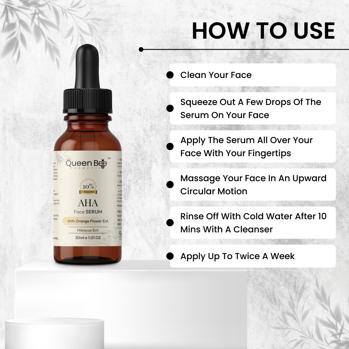 - TARGET MULTIPLE SKIN CONCERNS : 10% AHA Face Serum Is Designed to Address a Range Of Skin Concerns, Including Dullness, Uneven Texture, Acne, And Fine Lines And Wrinkles.